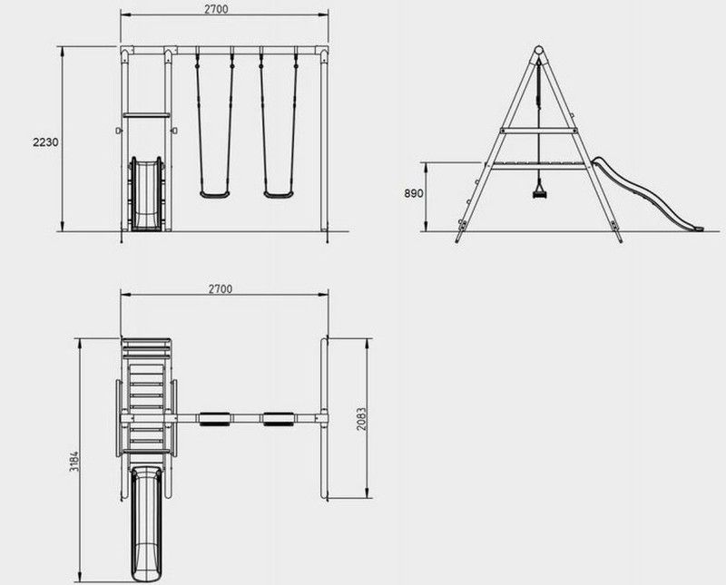 El Parque Infantil Milos es tan completo en su variedad de accesorios que permite que sea apto para un amplio rango de edades. Incluye Rampa con tobogán - 2 columpios - Escalera para trepar. Es una estructura para entretenimiento infantil al aire libre que ofrece una excelente relación de precio/calidad. Combinación de madera y plástico. Incluye un set de anclajes planos y corners plasticos que lo afirman y lo estabilizan haciéndolo muy seguro