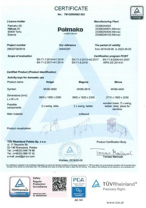 L'aire de jeux en bois Holger est faite de bois et d'un design certifié avec les plus hauts standards de qualité, pour offrir un amusement sûr pour les enfants. Sa structure comprend des supports pour balançoire et une plateforme complète pour glissière. Votre fini est professionnel et les couleurs choisies pour la balançoire auront fière allure dans vos espaces extérieurs. Suivez le manuel d'assemblage et d'ancrage pour une installation optimale. N'inclut pas de glisser.